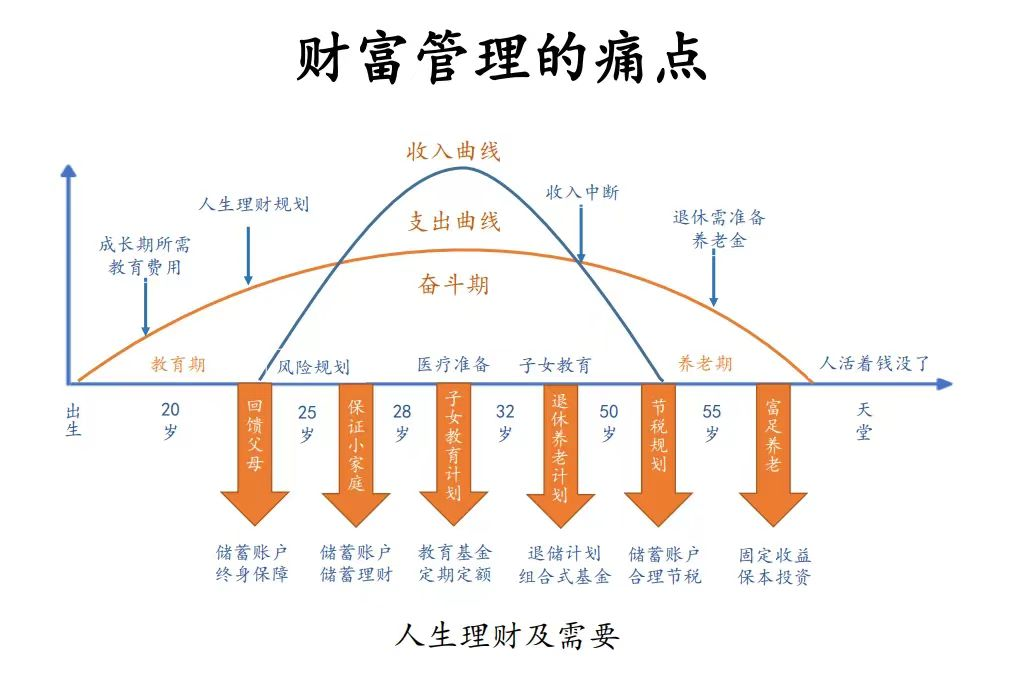 許多人常常根據(jù)當前的收入來預測一生的財富,然而實際上,我們的收入曲線往往是先上升后下降的,隨著壽命延長,收支缺口將會不斷擴大。