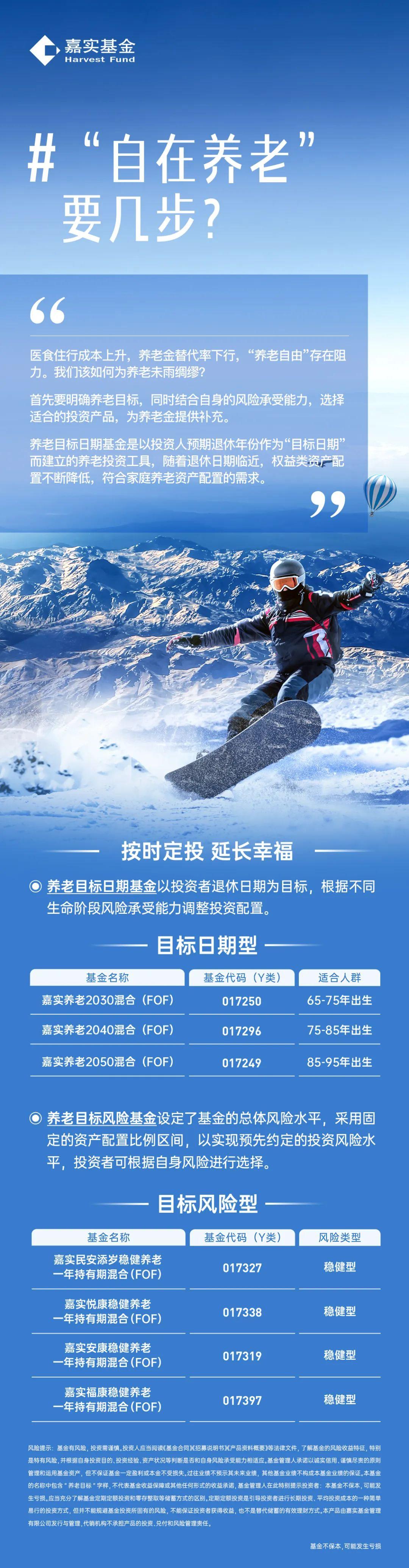 *風險提示:基金投資需謹慎,投資人應當閱讀《基金合同》、《招募說明書》、《產(chǎn)品資料概要》等法律文件,了解基金的風險收益特征,特別是特有風險,并根據(jù)自身的投資目的、投資經(jīng)驗、資產(chǎn)狀況等判斷是否和自身風險承受能力相適應?;鸸芾砣顺兄Z以誠實信用、謹慎盡責的原則管理和運用基金資產(chǎn),但不保證基金一定盈利或本金不受損失。過往業(yè)績不預示其未來業(yè)績,其他基金的業(yè)績也不構成本基金業(yè)績的保證。個人養(yǎng)老金可投公募基金范圍具體以中國證監(jiān)會確定的產(chǎn)品名錄為準。“養(yǎng)老”字樣不代表收益保障或任何形式的收益承諾,個人養(yǎng)老金基金不保本,可能發(fā)生虧損。不同產(chǎn)品的風險收益特征可能不同,投資人應根據(jù)自身年齡、退休日期、收入水平和風險偏好等選擇合適的養(yǎng)老金基金。